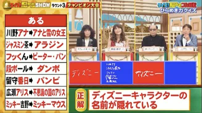 正解は「ディズニーキャラクターの名前が隠れている」。タブレットさん、マリックさんが見事正解。