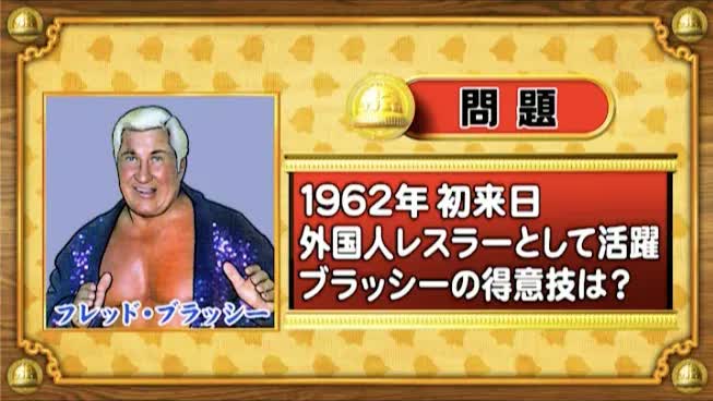 最後は、名レスラー問題。今から61年前の1962年に初来日し、外国人レスラーとして活躍した、ブラッシーさんの得意技とは何でしょうか?