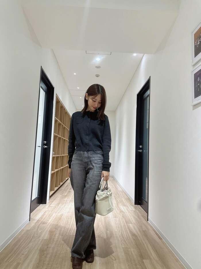 他にも、ブラックカーディガン×ジーンズで決めた、きれいめカジュアルコーデや
