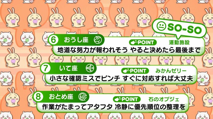 『めざましテレビ』で放送中の「ちいかわ占い」 テレビ放送がない日はお休みで、月~土:朝7時以降に更新予定です。