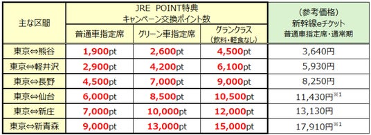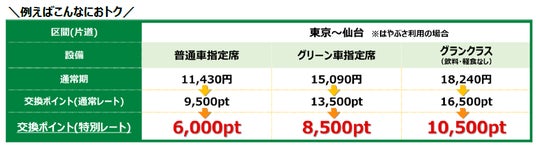 ※1 はやぶさ利用の場合。 ※「pt」はポイントを表します。 ※おとな、こどもともに交換ポイント数は同じです。