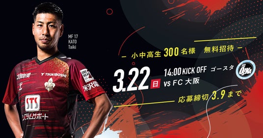 ■対象試合:明治安田J2・J3百年構想リーグ第7節 3月22日(日)FC大阪戦(14:00 キックオフ)