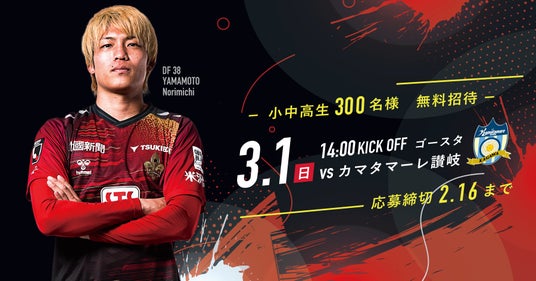 ■対象試合:明治安田J2・J3百年構想リーグ第4節 3月1日(日)カマタマーレ讃岐戦(14:00 キックオフ)