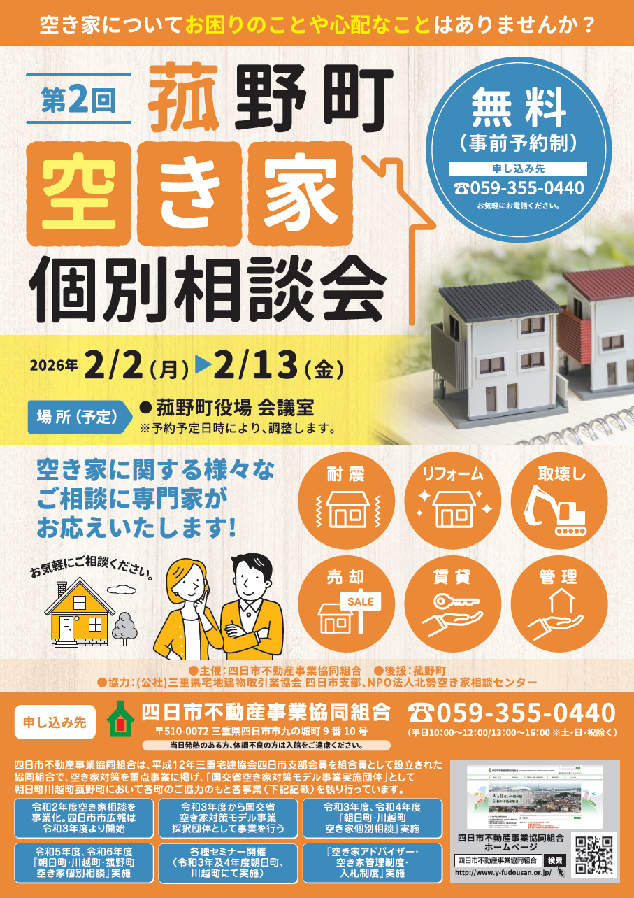 第2回 菰野町空き家個別相談会・開催期間:2026年2月2日(月)~2月13日(金)