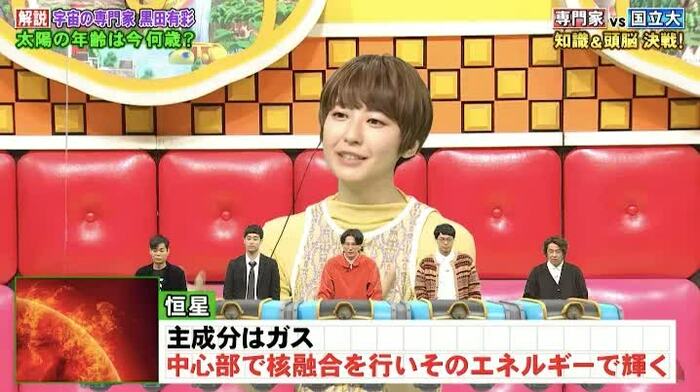 自ら光を発する天体が「恒星」だと答える問題では、宇宙の専門家の黒田有彩さんが恒星の一つである太陽について解説を加えてくれました。