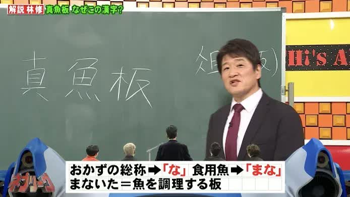 「まないた」を漢字で書く問題では、林修先生が「まないた」をなぜ「真魚板」と書くのか、教えてくれました。