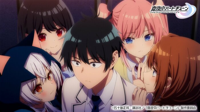 TVアニメ『真夜中ハートチューン』は、過去に毎晩のように聞いていたラジオ配信者「アポロ」の正体を探す、財閥の御曹司である主人公・山吹有栖が、声に関する夢を持つ放送部の4人の少女たちと出会う青春ラブコメ。アポロそっくりの声を持つ4人にアポロの面影を感じ、彼女たちの夢を叶えながら正体を探る「声」をテーマにした物語です。