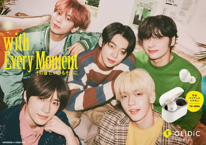 TOMORROW X TOGETHERは、オーディオブランド「GLIDiC(グライディック)」の完全ワイヤレスイヤホン「GLIDiC TW-4000s」のタイアップアーティストとして起用され、メイキングムービーやトークムービーの撮影に参加しました。