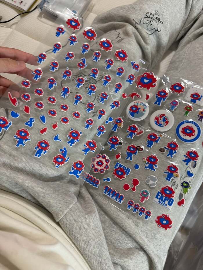 丸山さんはシールを早速貼り進めながら、「ほんとミャクミャク可愛い、ミャクミャクの靴履かなくちゃ」と、いまだ覚めやらぬミャクミャク愛の強さが伝わってきます。