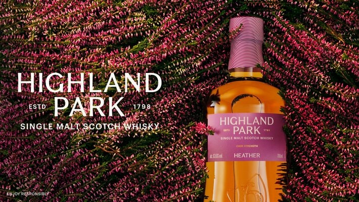 数々の受賞歴を誇るスコットランド・オークニーの名門蒸留所「ハイランドパーク」より、新商品〈カスクストレングス:ヘザー〉を発売いたします。これは、ハイランドパーク蒸溜所のあるオークニー諸島に自生する“ヘザー”の花を多く含むピート(泥炭)で乾燥させたスモーキーなモルトを使用した限定版シングルモルトで、アルコール度数63.6%のカスクストレングスでボトリング。ハイランドパークを象徴するこのヘザーピートの芳醇な香りが類まれなるウィスキーを作り出しています。