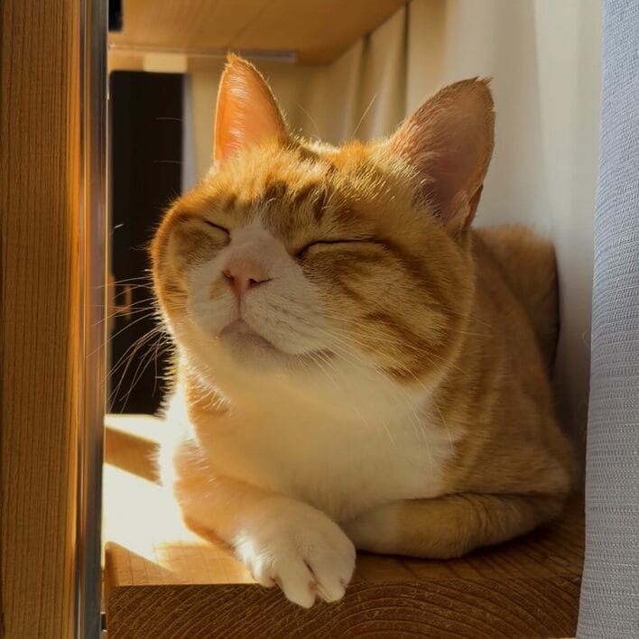 外からの柔らかい日の光を浴び、目を閉じて気持ちよさそうな表情を浮かべるのは、6歳の元野良猫「とらまる」くん。1歳くらいの時にケガをしている所を発見され、その後家族に迎え入れられました。