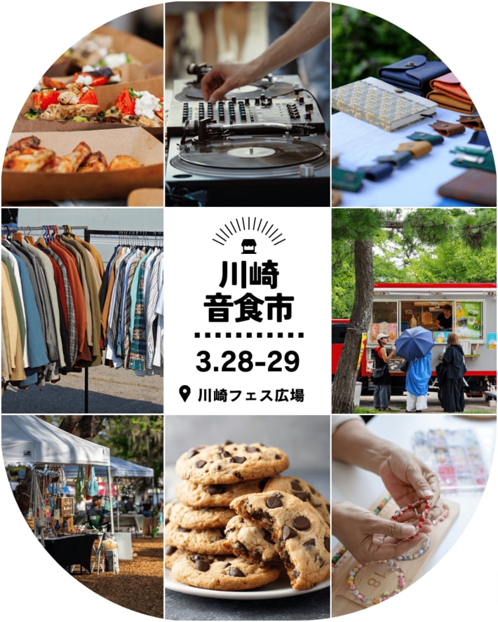 心地よい音楽、美味しい食、そして素敵なモノとの出会いが待っているマーケットを 3月28日・29日の2日間、川崎駅前の広場にて「川崎音食市 」を開催いたします。