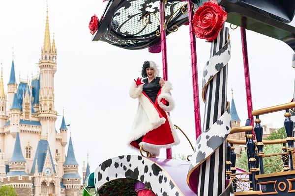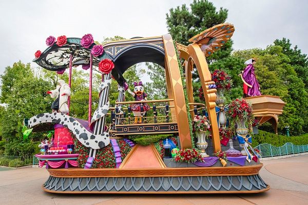 続いて登場したのは、デイジーダック、女王、クルエラ・ド・ビルが乗ったフロート。