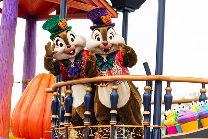 他にも、チップ、デールたちも登場。いたずら好きの動物たちが集まる、お菓子やかぼちゃで飾り立てられたユニークなフロートにも注目です。