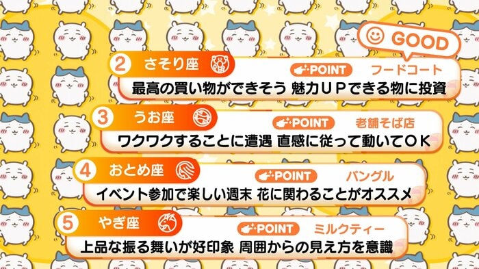 『めざましテレビ』で放送中の「ちいかわ占い」 テレビ放送がない日はお休みで、月~土:朝7時以降に更新予定です。