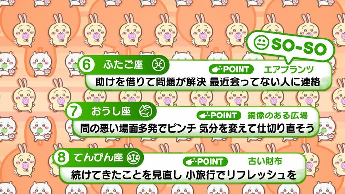 『めざましテレビ』で放送中の「ちいかわ占い」 テレビ放送がない日はお休みで、月~土:朝7時以降に更新予定です。