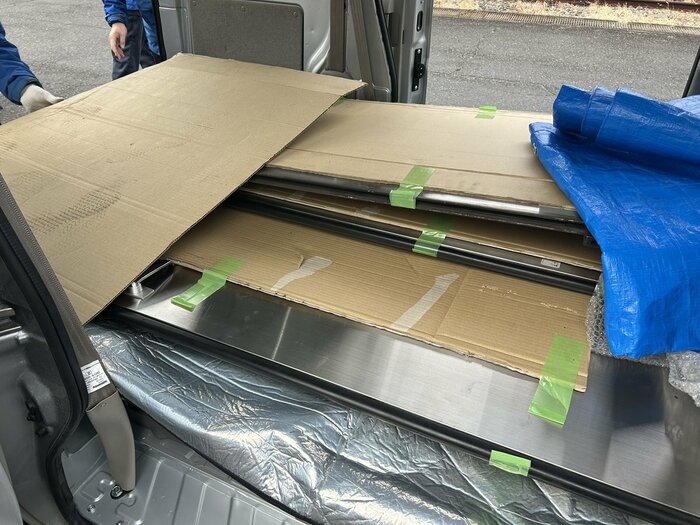 購入後は、豊田車両センターから実家までの道のり約100kmを友人の手を借りて運搬したんだとか。公開された写真には、段ボールで保護されたドアが車の荷台にのっている光景がおさめられています。
