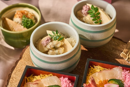 桜の便りとともに、日ごとに温かさを増す春の訪れを感じる季節に、目にも舌にも春を感じる季節感あふれる内容でご用意します。「シラスとアスパラガスのミモザ」や「桜海老と菜の花のキッシュ」など、春の彩りを感じる前菜をはじめ、「筍もちあられ揚げ 生姜と桜海老のあん」「京豆腐と真鯛桜葉巻き 揚げ出し仕立て」といった京都ならではの風情あふれる一品をご用意。旬の筍と鶏肉を使った「鶏肉と筍の青さ海苔バターソテー」や西京味噌ソースで仕上げた「ポークステーキ」、「春野菜チャンプルー」など、季節の食材をふんだんに使ったお料理が並びます。一番出汁で仕上げた「鯛茶漬け」は、春の訪れを感じる特別な一品です。「さくらといちごのプリン」「桜のフィナンシェ」など、春らしいデザートも豊富に取り揃えます。
