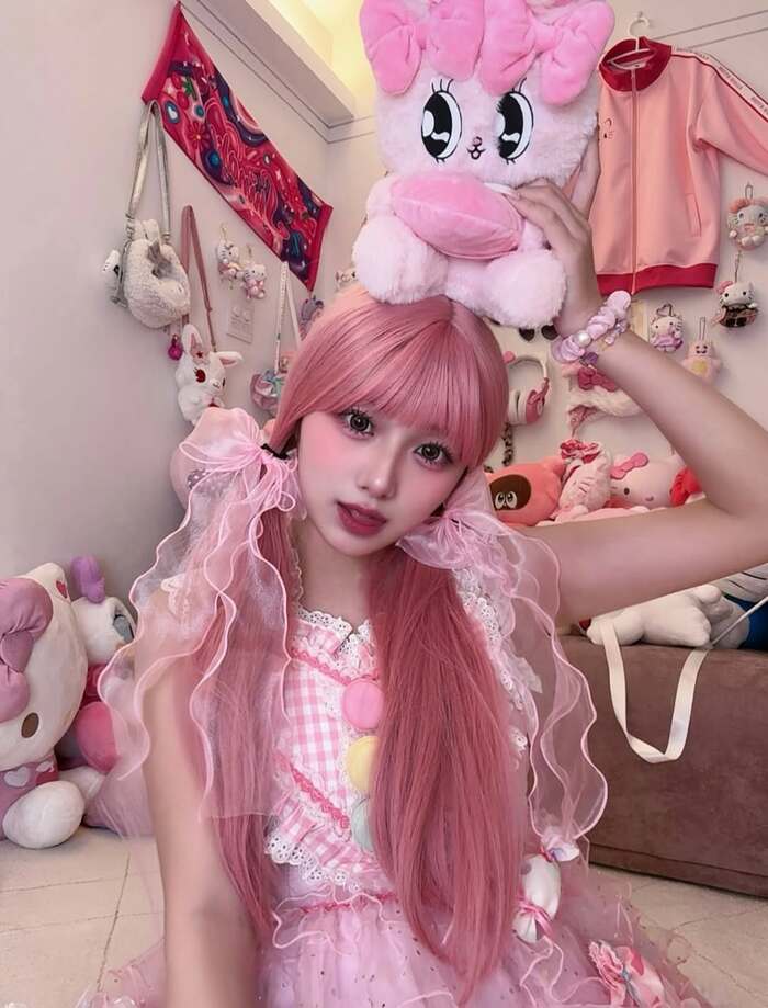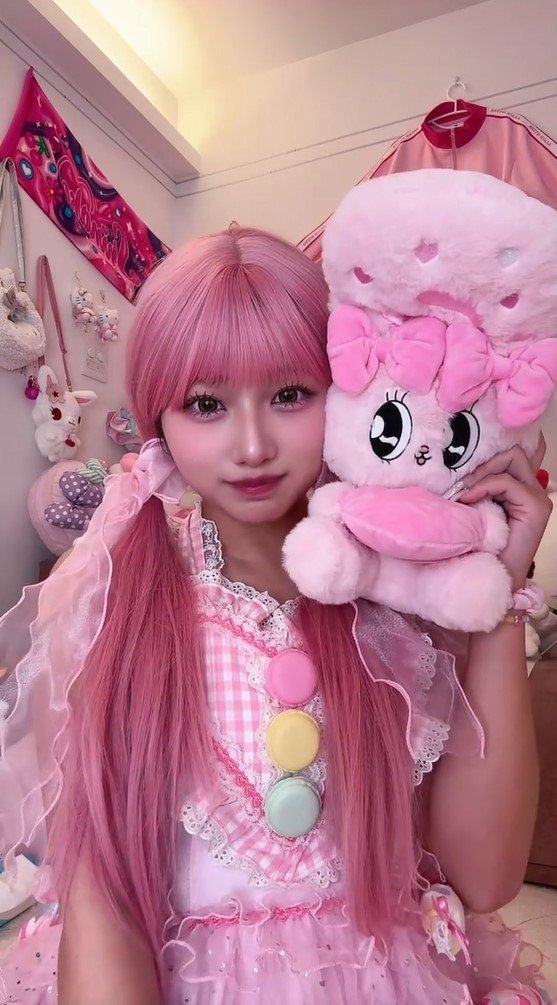 希空さんは、胸下まであるロングヘアをピンクのリボンでツインテールに結び、ピンクを基調としたキュートなフリフリの服を着ていて、一見、希空さんだとは分からないほど雰囲気がガラッと変わっています。