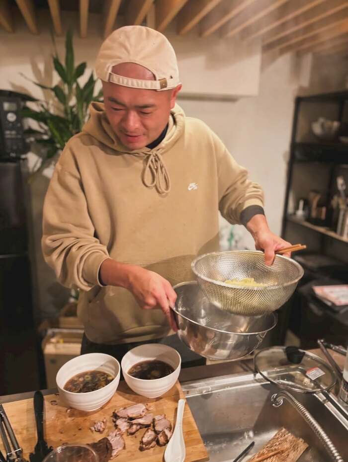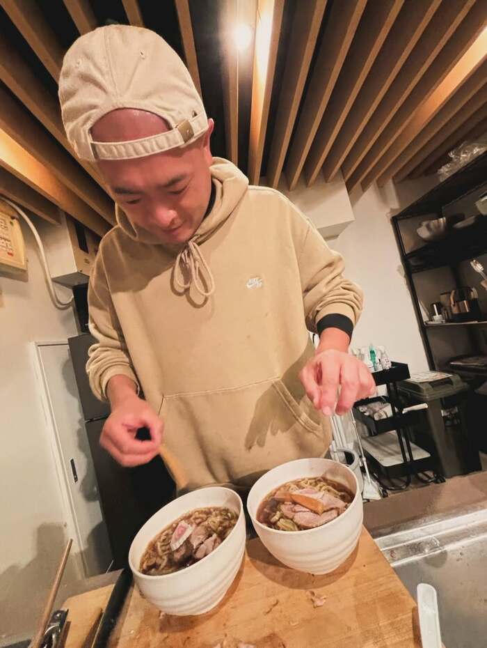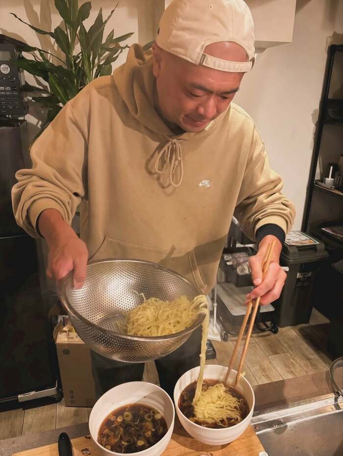 菜箸を使って丁寧に麺を持ち上げ、スープへと移していくあばれる君。その一つひとつの動きから、仕上がりへのこだわりが伝わってきます。