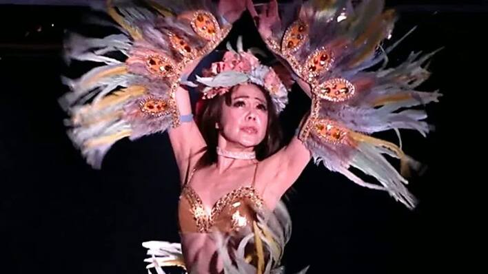 彼女たちの視線の先にいるのは、日本で最高齢のストリッパー・星愛美さん(56)。