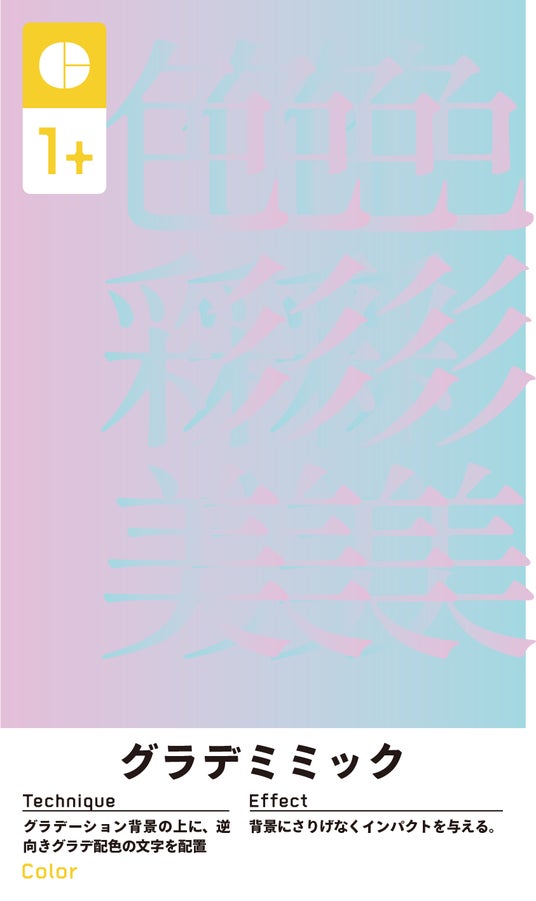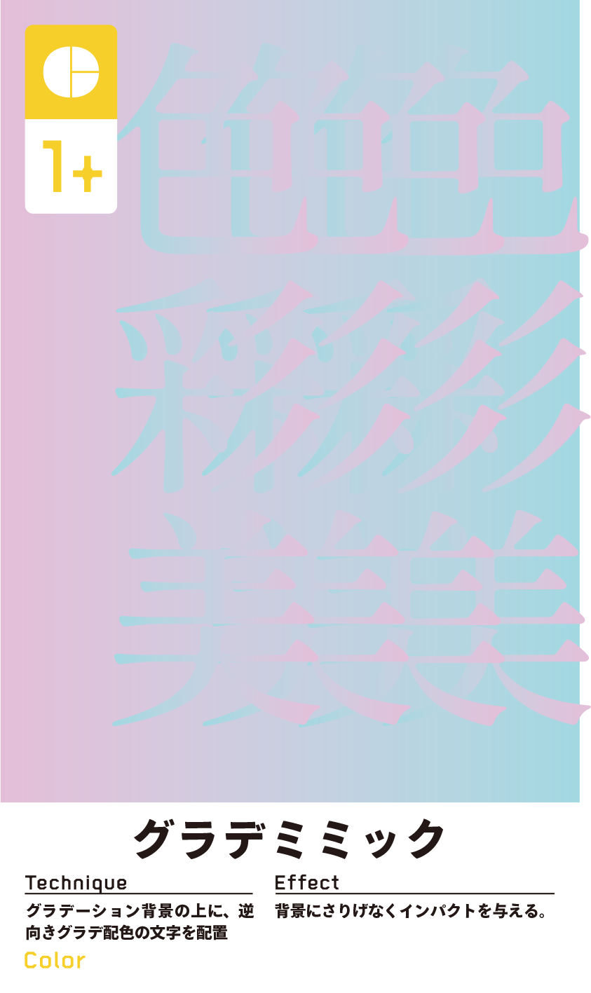 技法: グラデーション背景の上に、逆向きグラデ配色の文字を配置