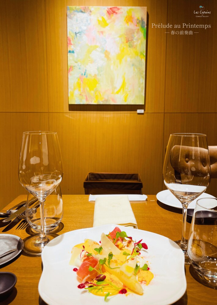 春の気配を感じさせる作品群から着想を得て、野村シェフが今回の展示のために用意したコラボレーションメニュー。