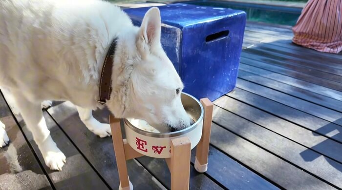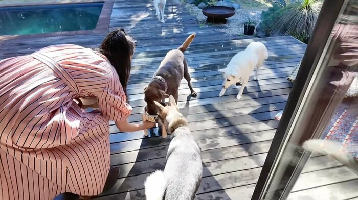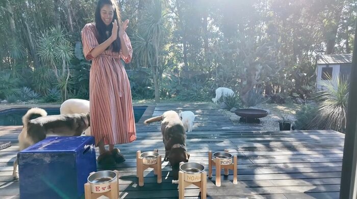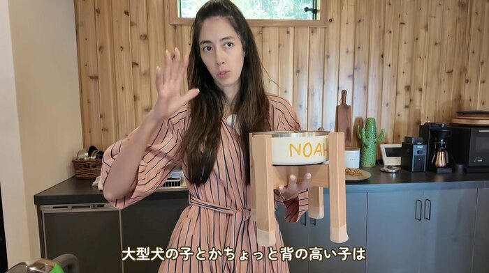 また、大型犬には木製のスタンドを用意し、無理のない姿勢で食事ができるよう配慮するなど、愛犬たちへの細やかな気遣いも見せています。