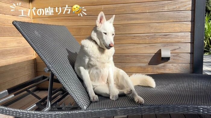 そんな中、「エバ」はプールサイドのサマーベッドに、まるで人間のおじさんのような格好で寝そべる姿を披露。そのあまりにもくつろいだ様子に思わず笑みがこぼれます。