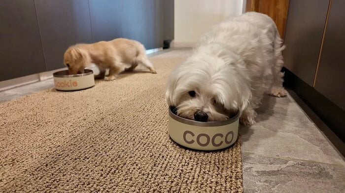 そして、いよいよご飯の時間。フードボウルを手にまずは小型犬たちのもとへ向かいます。待ちきれない様子で走り回ったり、ぴょんぴょんと跳ねたりと、嬉しさを全身で表現する姿がとっても愛らしいです。