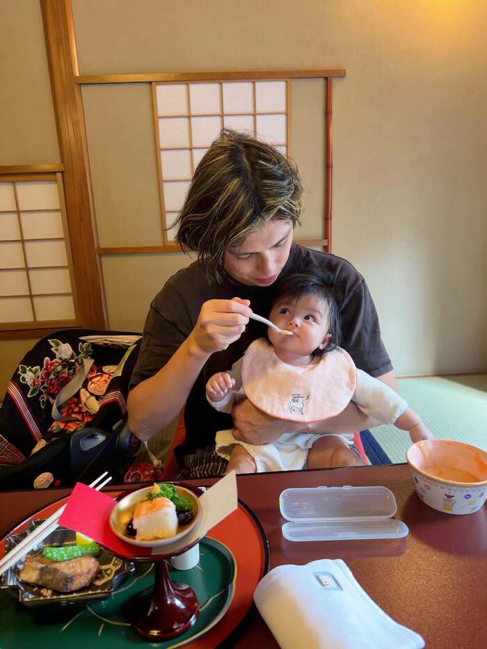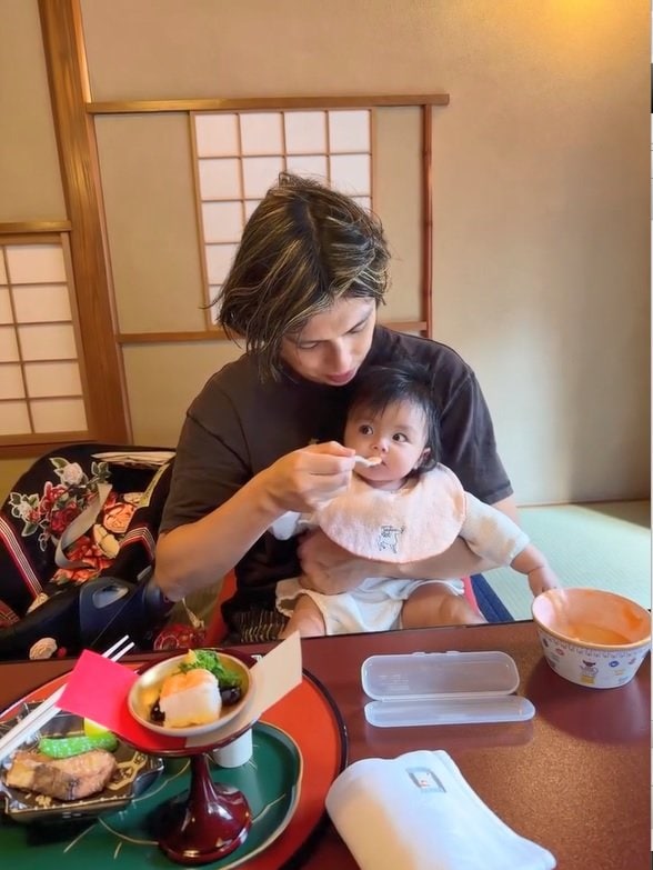 今回の投稿では「きょうはグーちゃんの生後7ヶ月記念日のお祝いごはん お豆腐が食べれるようになったグーちゃんとお豆腐屋さんへ行ってきたよ」と我が子の成長をつづり、日本料理店「東京 芝 とうふ屋うかい」を訪れたことを報告。