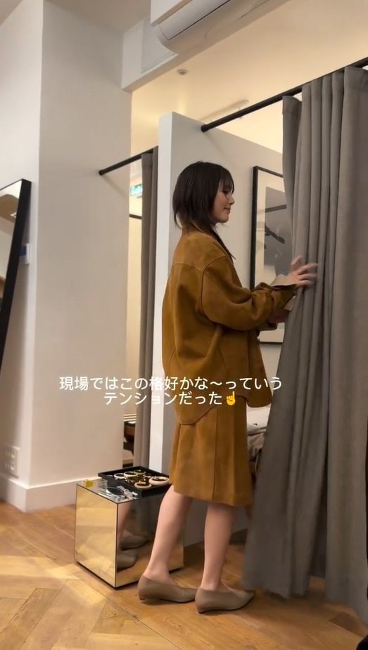 フィッティングルームで洋服を選んでいる本田さんの姿が。