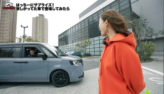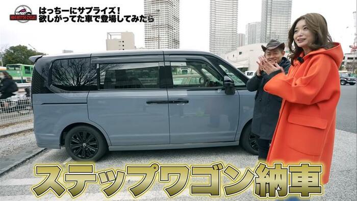 井戸田さんによると、蜂谷さんにすでにステップワゴンに決めたことは明かしていたようですが、今日が納車される日であることは伝えてなかったとのこと。「うれしい!」と終始ニッコニコな蜂谷さんは、どこに今回の車を隠していたのか気になった様子。