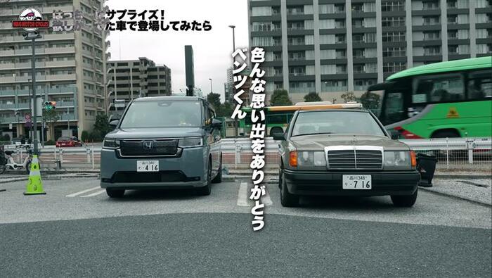 ちなみに、以前まで使っていたベンツの愛車はここでお別れ。2台並べたショットを見ると、新たな愛車の方が大きく、お子さんが増えたこともあり、使い勝手の幅が広がりそうですね。