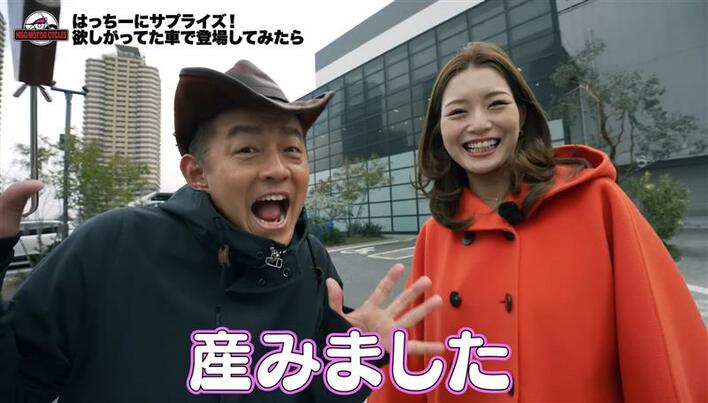 しばらくすると、購入した愛車を井戸田さん自らが運転し、蜂谷さんの元へと戻ります!井戸田さんは大きな声で「納車でーーーす!」と叫ぶと、蜂谷さんは「びっくりしたぁぁ!」と驚きを隠せず、「ステップワゴンじゃん!」とテンションが高まります。
