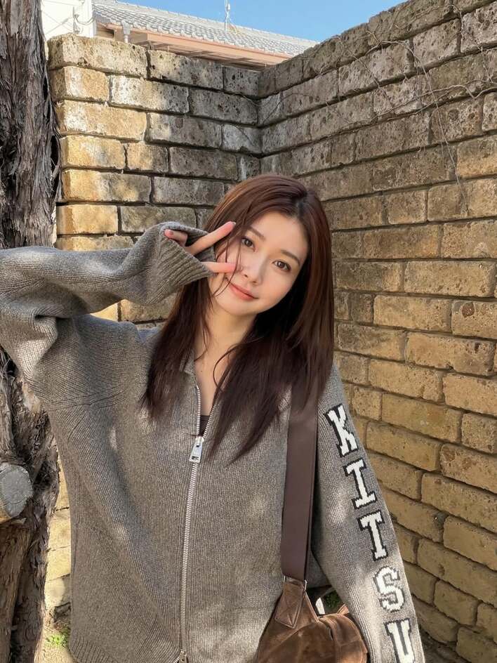 その写真を見てみると、グレーのジップニットのカーディガンを着て“萌え袖”でピースをする生見さんの姿が。