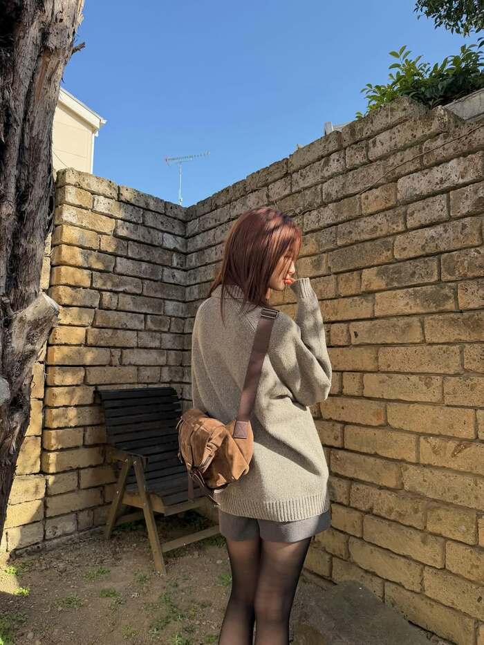 ブラウンのショルダーバッグを合わせたあたたかみのあるコーディネートになっていて、首をかしげながらニコッとした笑顔でカメラを見つめる生見さんに思わず引き込まれてしまいますね。