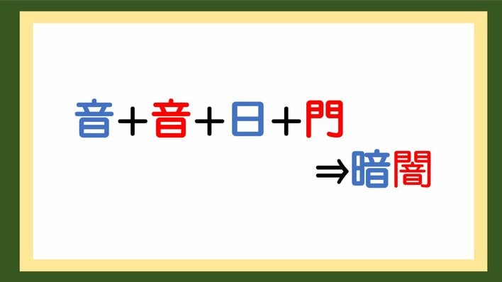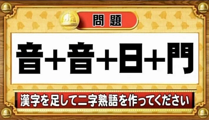 「音+音+日+門」。漢字を計算して二字熟語を作成してください。