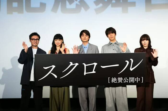 映画「スクロール」の公開記念舞台挨拶が2月4日に行われ、北村さん、中川さん、松岡茉優さん、古川琴音さん、清水康彦監督が登壇しました。