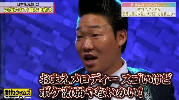 人のいいみやぞんさんは、「罪悪感が…」「うーん…なんか傷を負っている気がします」などと言いながらも、さまざまなパターンの即興応援ソングを歌い続けたのでした。