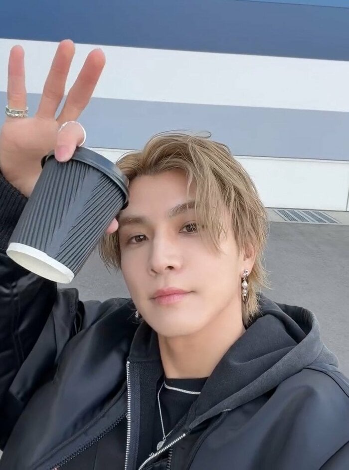 自撮りをした動画では、カップを顔の横に掲げて何かを話し、カメラに手を振るような様子も。