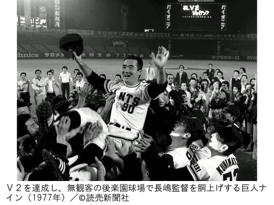天覧試合でのサヨナラ本塁打により、長嶋は国民的スターに。現役時代の17年間で巨人は13回のリーグ優勝と11回の日本一を記録。1974年に引退。翌年、38歳の若さで巨人軍監督に就任しました。