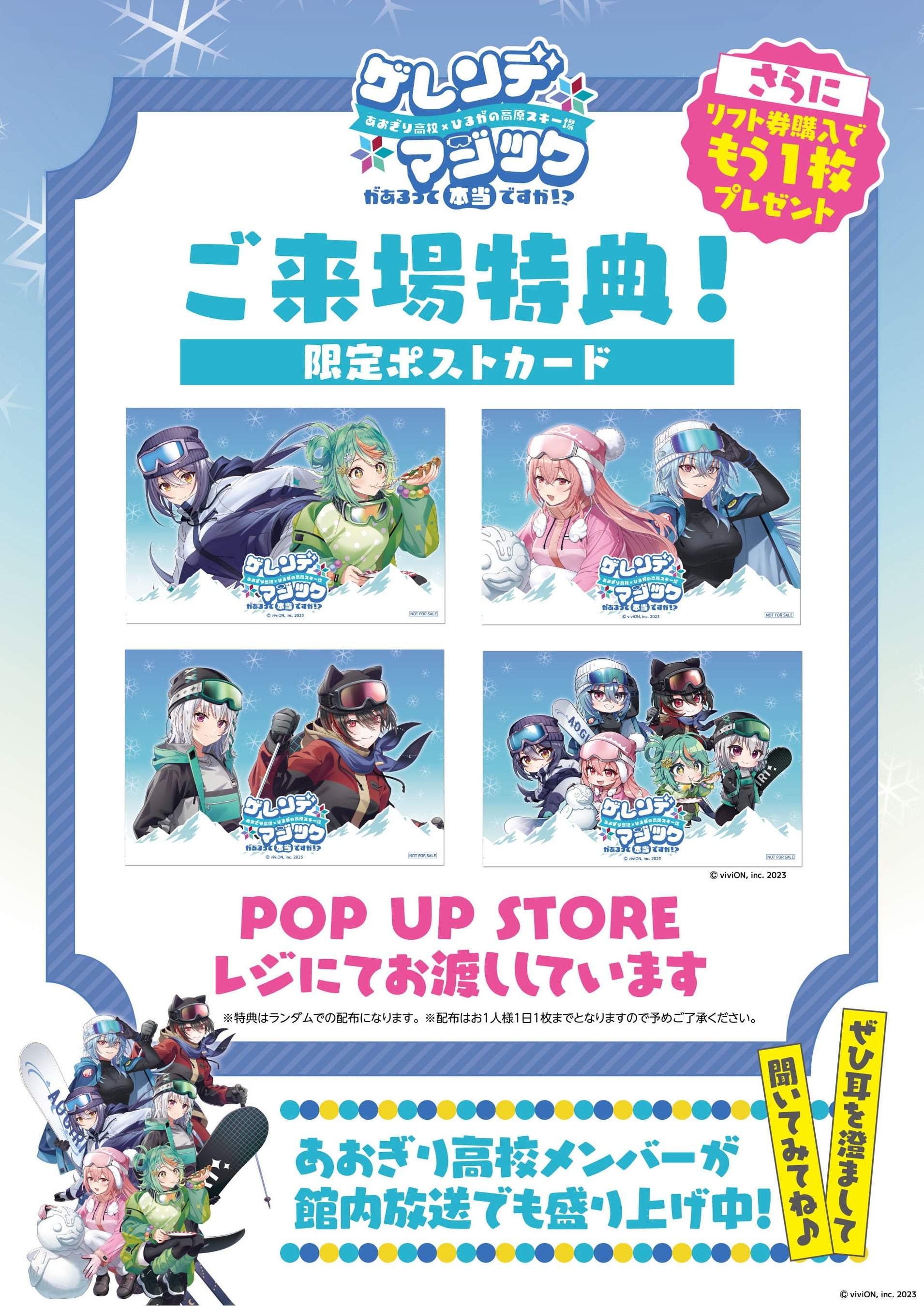X(旧:Twitter)にて「#あおぎりゲレマジ」をつけてあおぎり高校コラボの様子やレビューをポストすると、投稿いただいた方の中から抽選で1名様に缶バッジ、オリジナルコースター、ポストカードの全種1セットをプレゼントします。