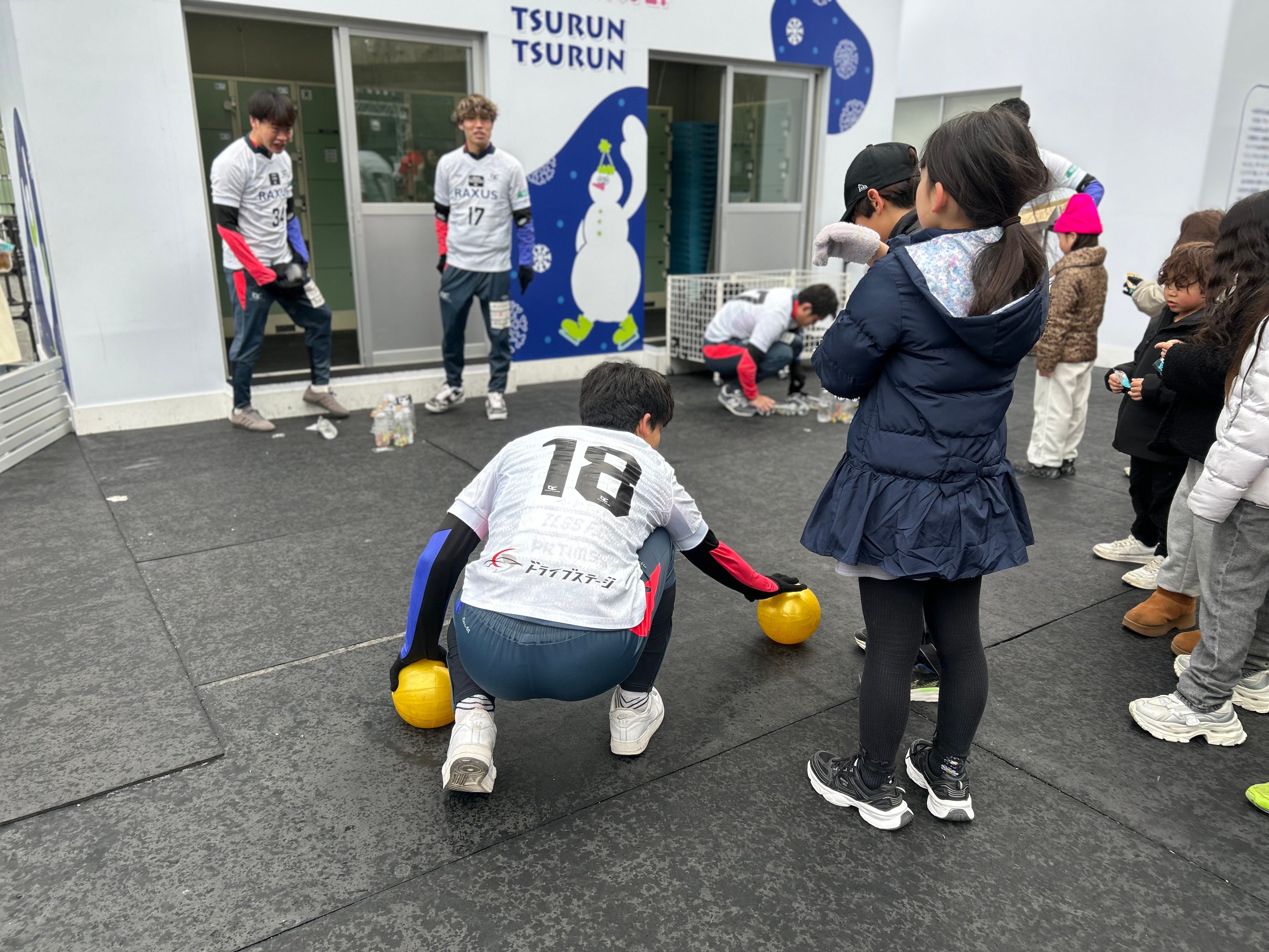 - Osaka City SCの選手と一緒に行うサッカーボウリング