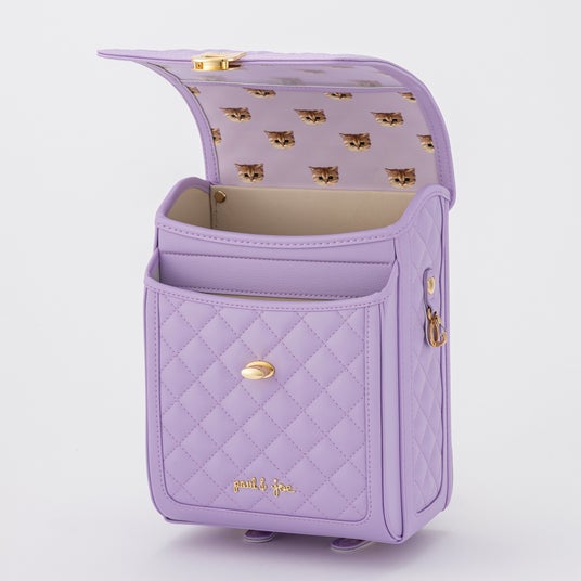 ふんわりと上品さをまとったマトラッセ風キルティング。半かぶせの錠前にはネコ型の回転錠を採用し、開けるたびに心が弾みます。