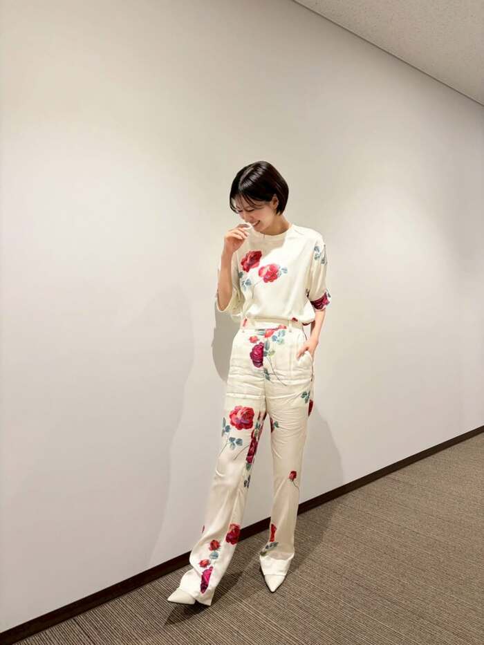 そして最後は、白地にバラの花柄が映えたセットアップ衣装も公開。