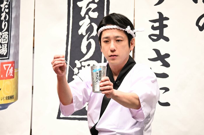 2026年2月4日、嵐の二宮和也さんが、ハチマキと前掛けを身につけた大将スタイルで「こだわり酒場」新CM発表会に登場。