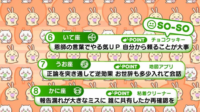 『めざましテレビ』で放送中の「ちいかわ占い」 テレビ放送がない日はお休みで、月~土:朝7時以降に更新予定です。