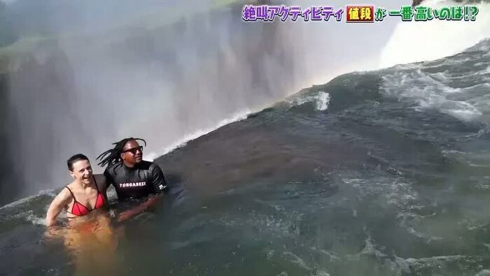 と、危険な川を50m泳ぎたどり着いたのは――一歩間違えれば命はない滝の上。通称「デビルズプール」。