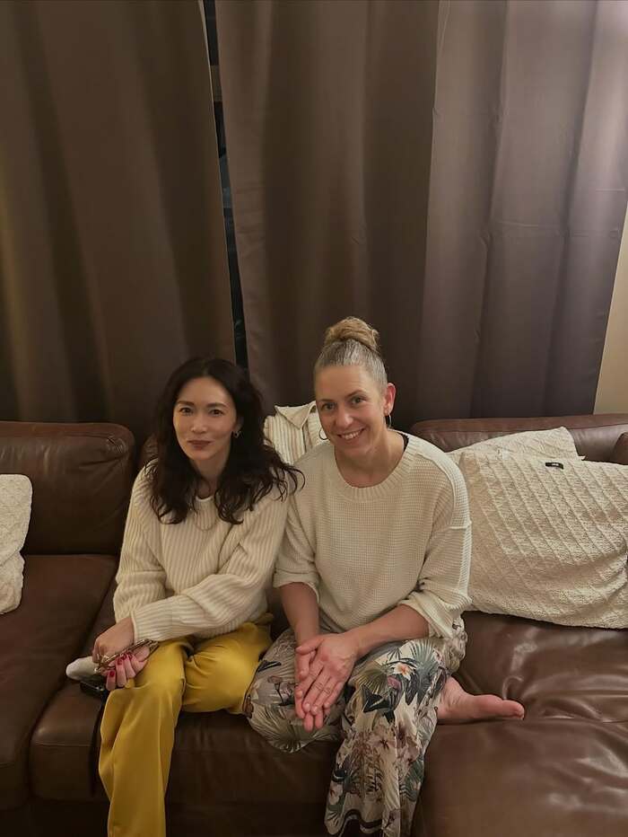 また、ホストファミリーとソファに並び、肩を寄せ合って座る長谷川さんの姿も。